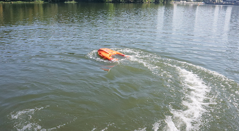其内置无人驾驶控制芯片,拥有 1800 米远程操控和一键返航功能,可实现 30 米高抛救援,能够自主修正航向,航行速度高达 7m/s。无需救援人员下水即可实现快速救援,在危险水域中,可有力保障救援者和被救者的人身安全。