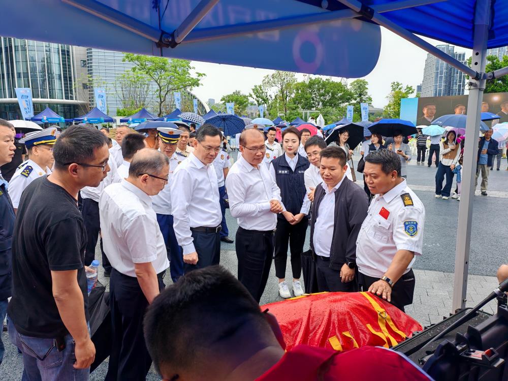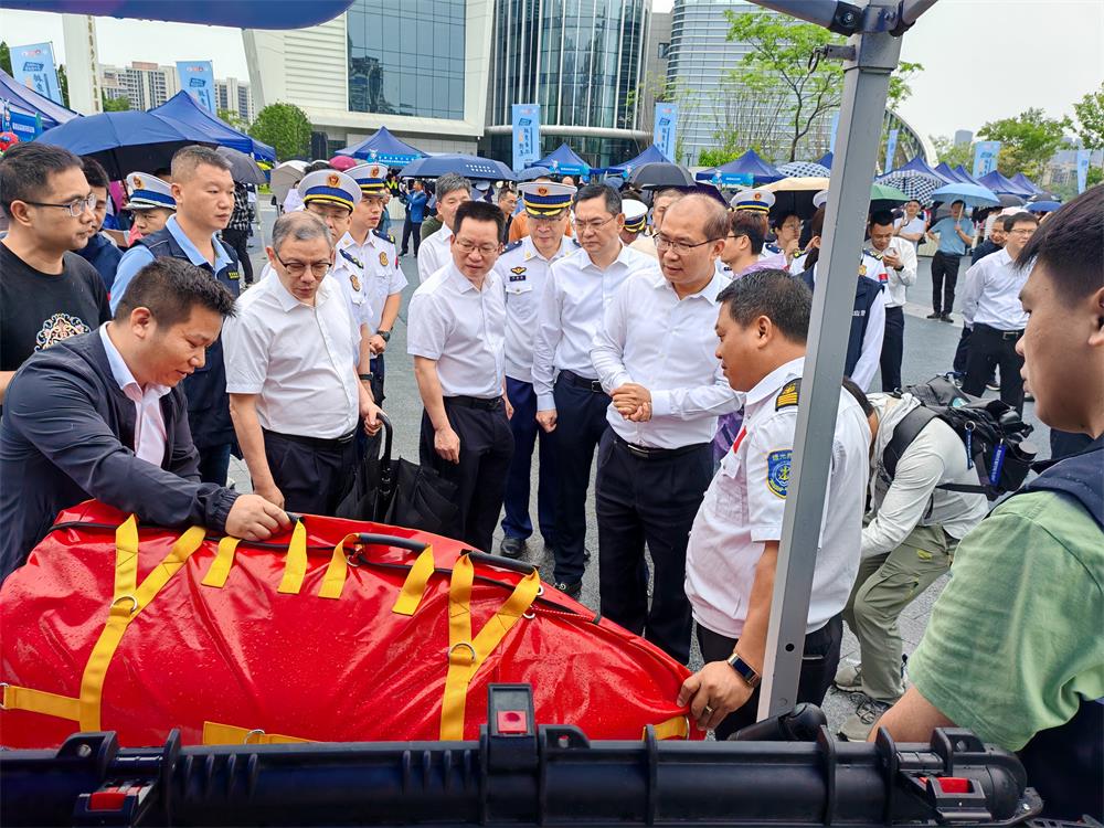 5月11日上午,在福州市晋安湖广场举办2025年全国防灾减灾日宣传活动,福建省常务副省长王永礼、应急厅厅长邱毅,常务副市长张定峰,人大副主任、晋安区委书记林涛,参观并了解智能救生圈和水上救生遥控机器人等智能救援装备。